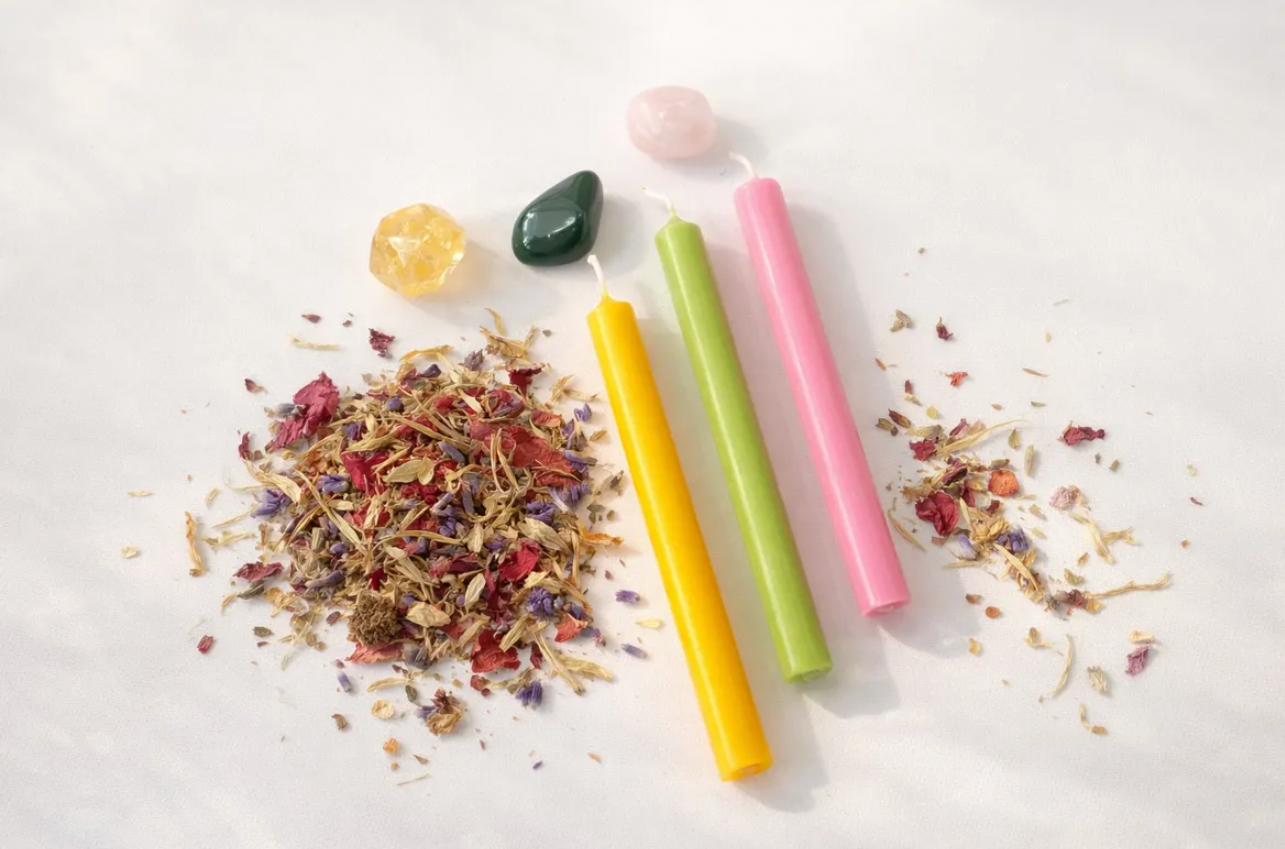 Un conjunto sencillo pero cargado de intención, ideal para activar proyectos, sembrar deseos y alinear tu energía con una etapa de crecimiento, expansión y florecimiento personal. Perfecto para realizar durante el Equinoccio de Primavera o en los días cercanos, así como en cualquier momento en el que sientas la necesidad de cambio, claridad o impulso hacia lo nuevo.